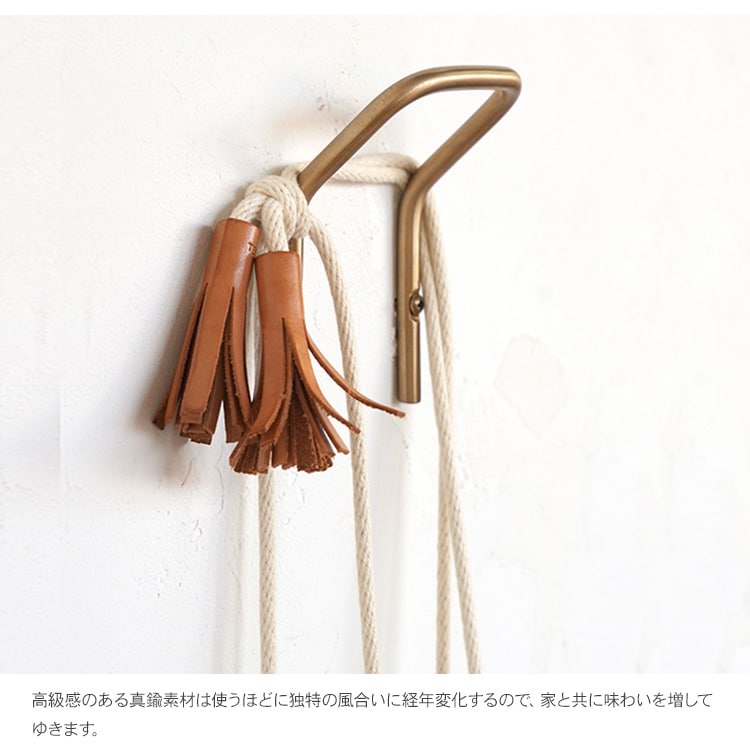 商品説明:壁にビスで取り付ける真鍮製のU字型フック。