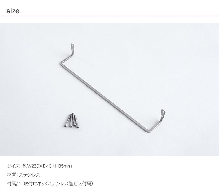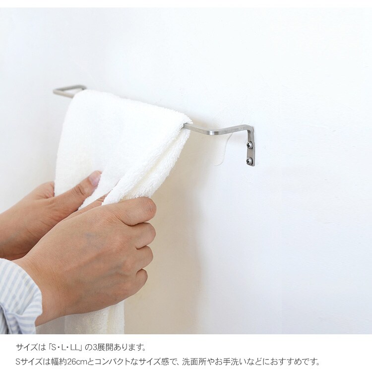 「ステンレスタオルレール S」は幅約26cmとコンパクトなサイズ感で、洗面所やお手洗いなどにおすすめです。