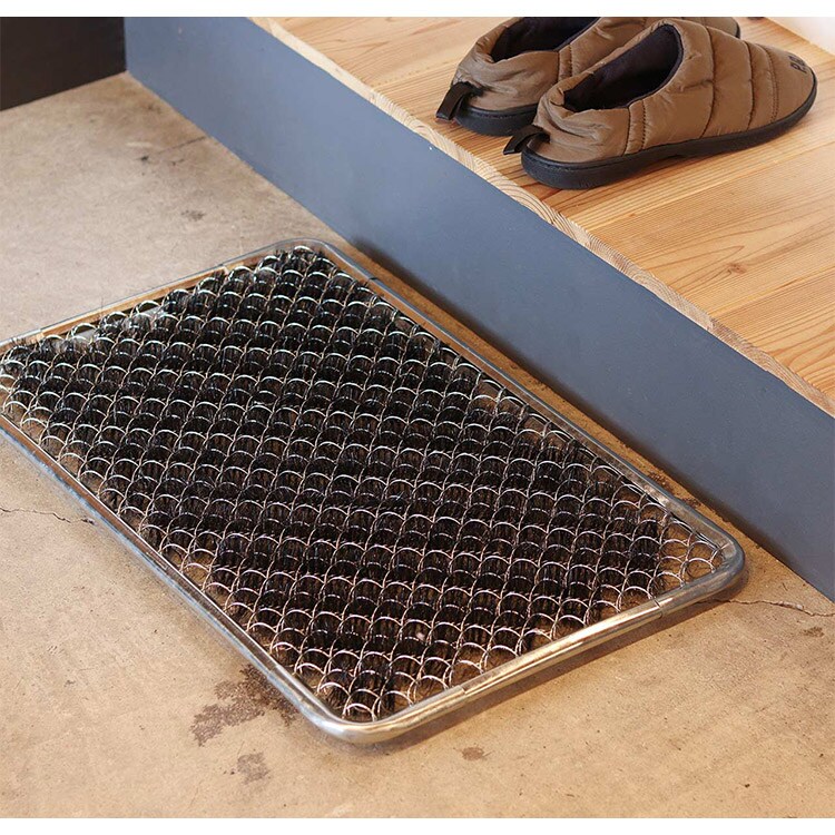 スチールのワイヤーとポリプロピレンのブラシで靴に不着した土砂や雪を落とし、土間や室内が汚れるのを防いでくれます。