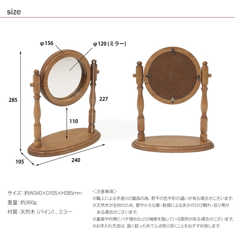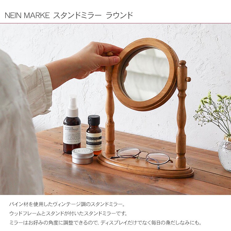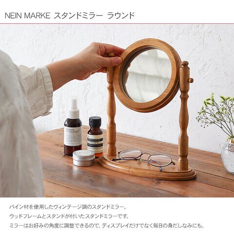 NEIN MARKE ナインマーケ パイン スタンドミラー ラウンド _PP02 鏡 卓上ミラー 角度調整 北欧 ナチュラル シンプル インテリア ラウンドミラー