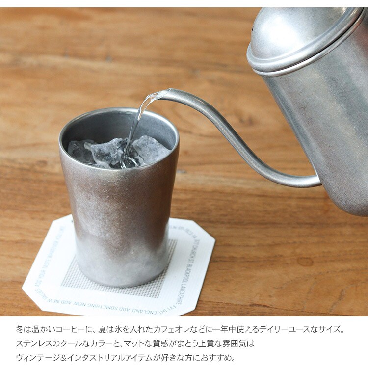 ダブルウォールタンブラーは冷たいものも熱いものも温度が変化しにくい 中空断熱構造になっており、熱い飲み物を入れても素手で持つことができます。