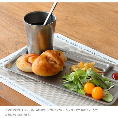 ステンレスの表面を細かく研磨することで、長く使い込まれたビンテージ食器のようなマットな質感を再現したテーブルウェアシリーズです。