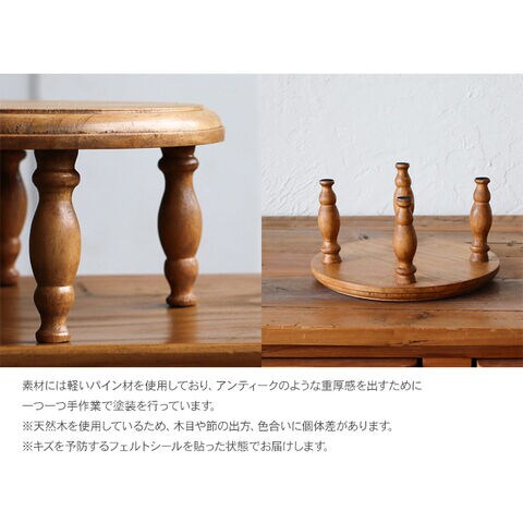 素材には軽いパイン材を使用しており、アンティークのような重厚感を出すために一つ一つ手作業で塗装を行っています。