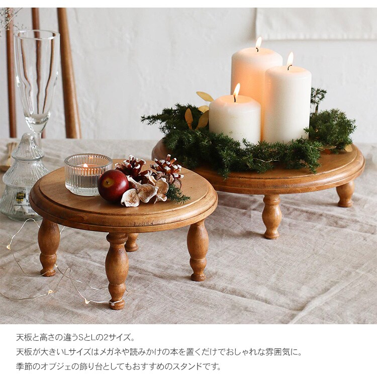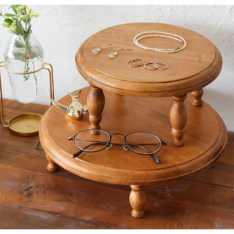 ディスプレイの幅が広がる円形のアンティーク風スタンド。