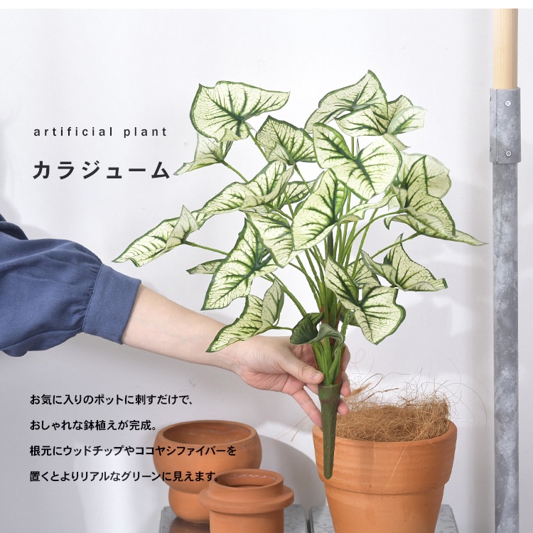 カラジューム ブッシュ 観葉植物 造花 フェイクグリーン インテリアグリーン ボタニカル アーティフィシャルフラワー アレンジメント 壁掛け 吊り下げ 壁面 グリーンディスプレイ リビング 玄関 カフェ店舗 会社
