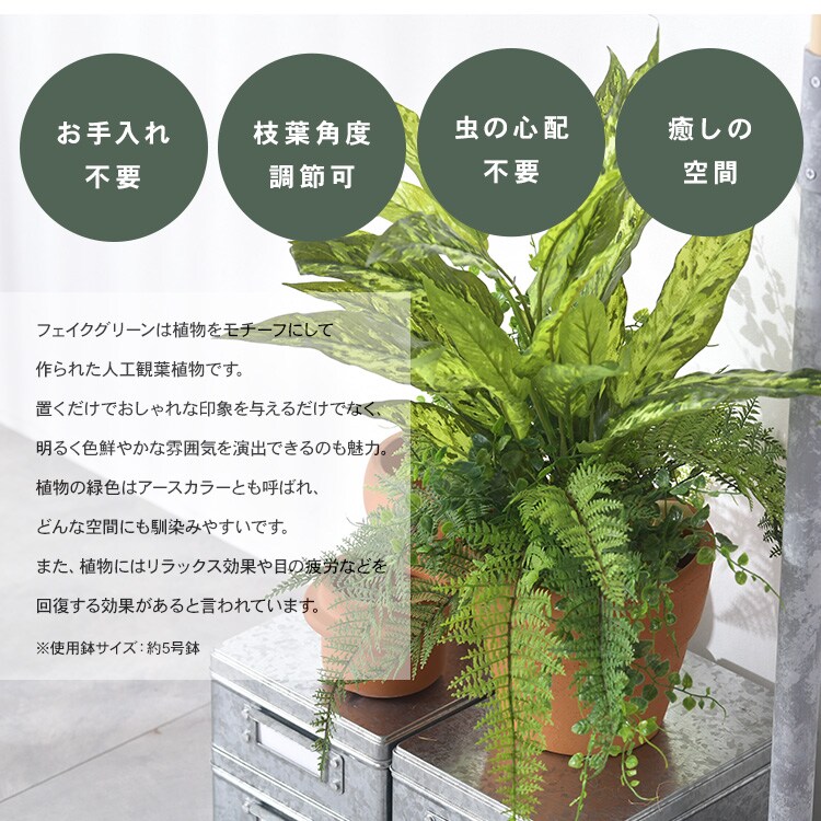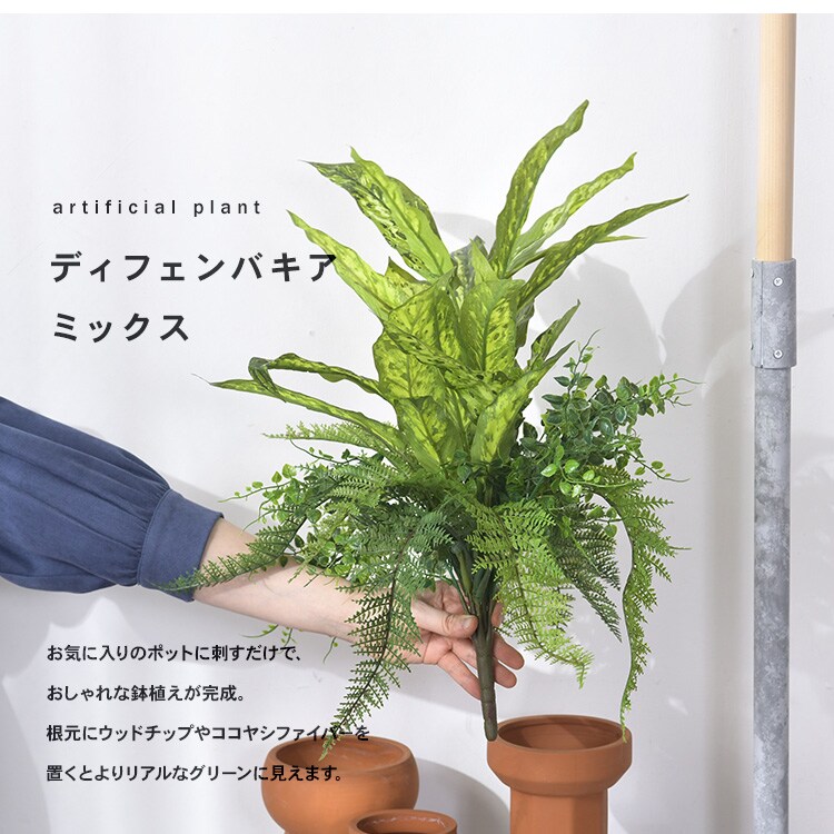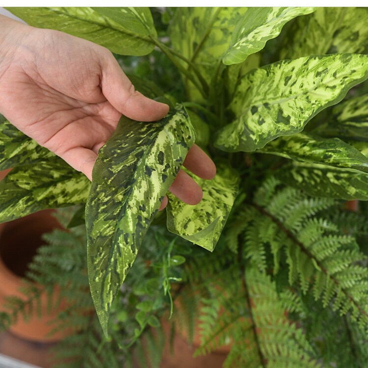 ディフェンバキア ミックス ブッシュ 観葉植物 造花 フェイクグリーン インテリアグリーン ボタニカル アレンジメント 壁掛け 吊り下げ 壁面 グリーンディスプレイ リビング 玄関 カフェ店舗 会社