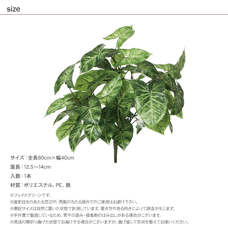サイズ:全長60cm×幅40cm、葉長12.5~14cm