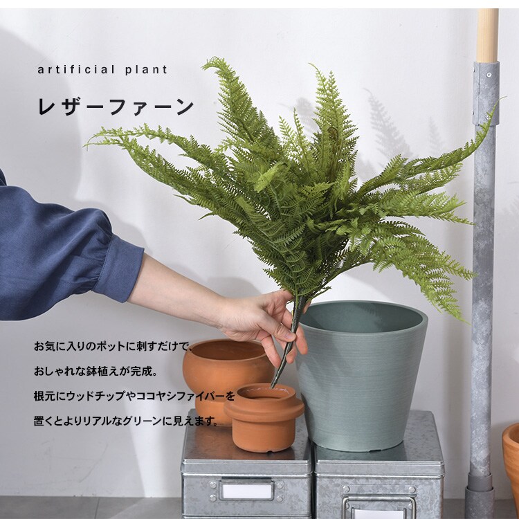 レザーファーン ブッシュ 観葉植物 造花 フェイクグリーン インテリアグリーン ボタニカル アーティフィシャルフラワー アレンジメント 壁掛け 吊り下げ 壁面 グリーンディスプレイ リビング 玄関 カフェ店舗 会社