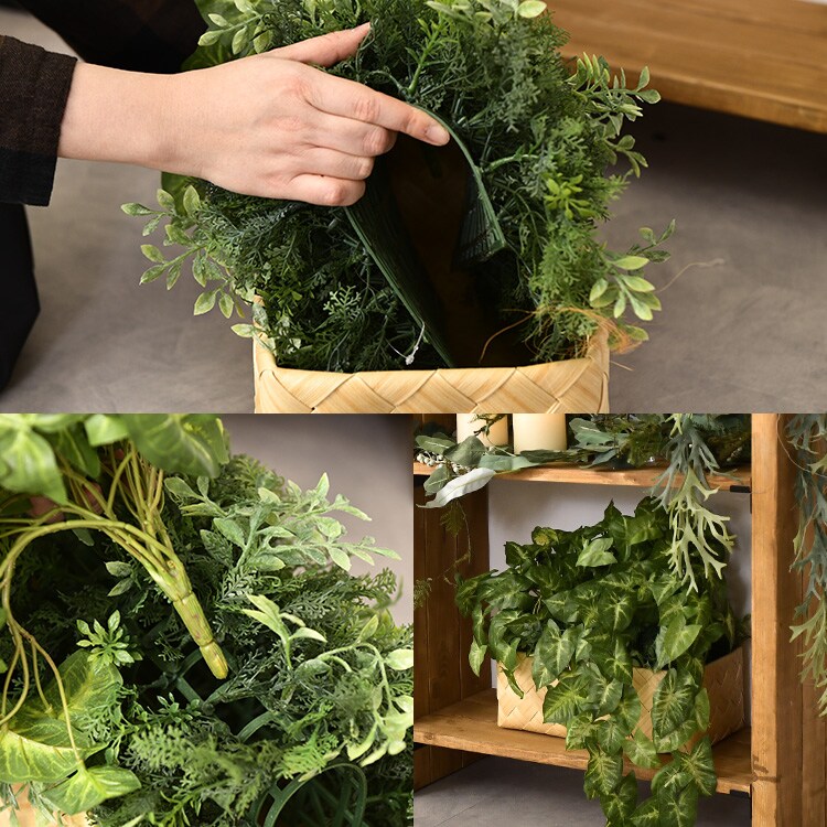 ワイルドグリーン マット 観葉植物 造花 フェイクグリーン インテリアグリーン ボタニカル アーティフィシャルフラワー アレンジメント 壁掛け 吊り下げ 壁面 グリーンディスプレイ リビング 玄関 カフェ店舗 会社