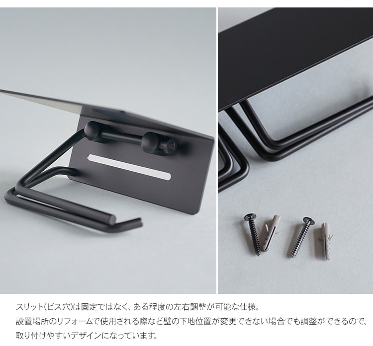 設置場所のリフォームで使用される際など壁の下地位置が変更できない場合でも調整ができるので、取り付けやすいデザインになっています。