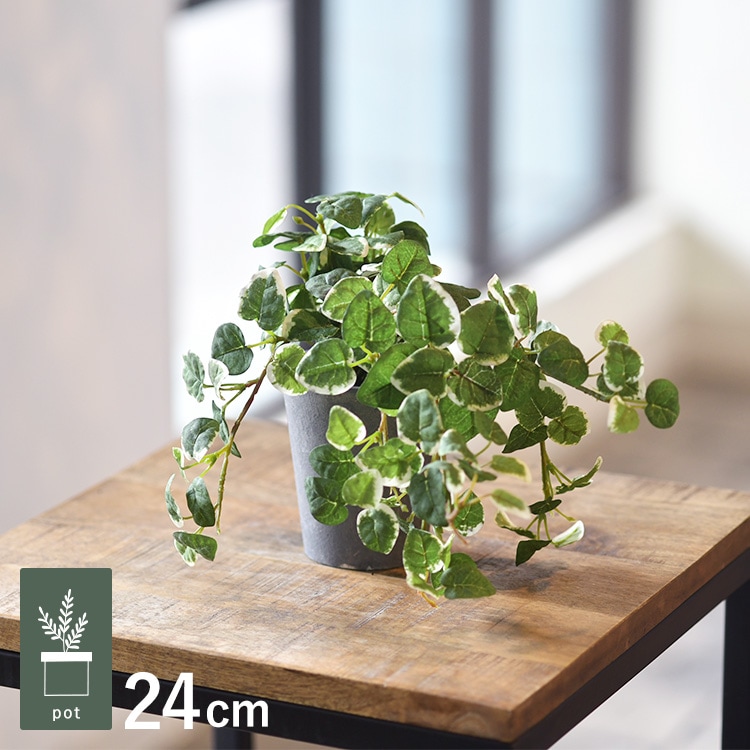 丸みのある形に白く縁どるような模様が特徴の小さな葉で、フェイクグリーンの中で人気の種類です。