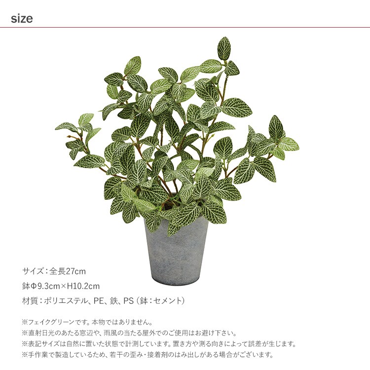 フィトニア ポット 観葉植物 フェイクグリーン インテリアグリーン リラックス 癒し 造花 北欧 ンテリア 鉢植 ボタニカル グリーンディスプレイ リビング 玄関 カフェ 店舗