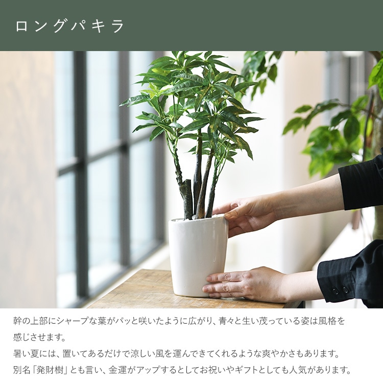 ロングパキラ ポット 観葉植物 フェイクグリーン インテリアグリーン リラックス 癒し 造花 北欧 ンテリア 鉢植 ボタニカル グリーンディスプレイ リビング 玄関 カフェ 店舗