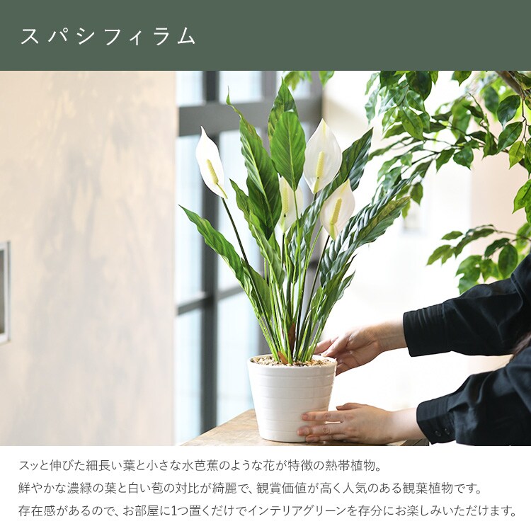 スパシフィラム ポット 観葉植物 フェイクグリーン インテリアグリーン リラックス 癒し 造花 北欧 ンテリア 鉢植 ボタニカル グリーンディスプレイ リビング 玄関 カフェ 店舗