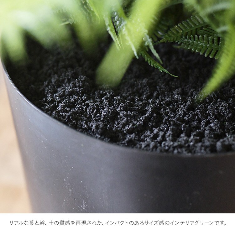 リアルな葉と幹、土の質感を再現された、インパクトのあるサイズ感のインテリアグリーンです。