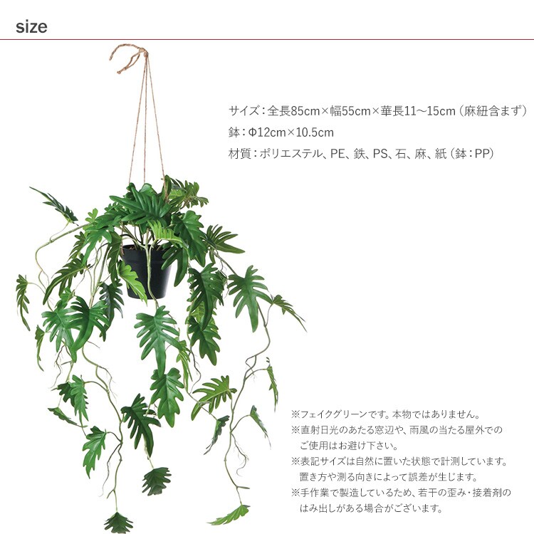 葉っぱが垂れ下がる姿が躍動感あり美しく、フックに引っ掛けたり棚にのせりたり、気軽に飾ることができます。