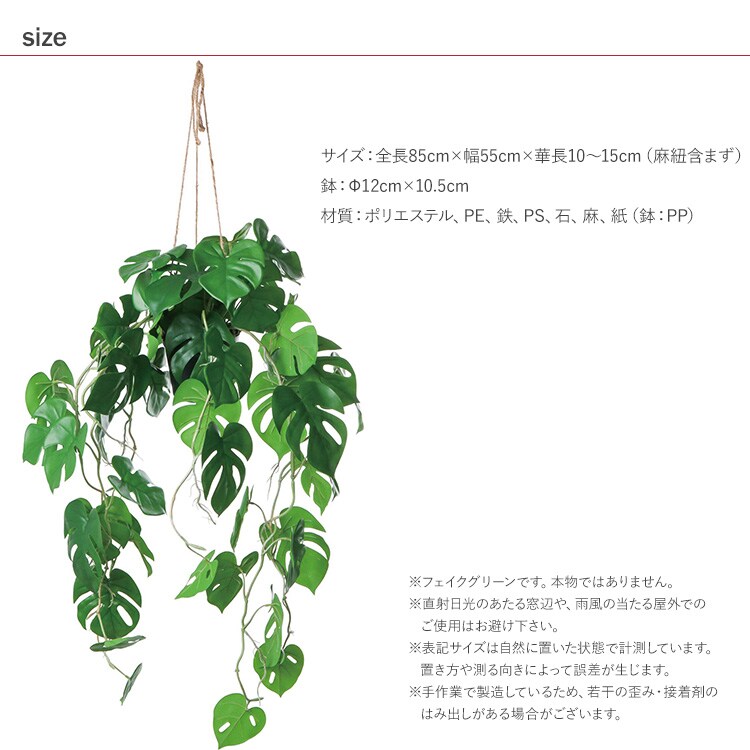 ヒメモンス ハンギングポット 観葉植物 フェイクグリーン インテリアグリーン リラックス 癒し 造花 吊るす 北欧 ンテリア 鉢植 ボタニカル グリーンディスプレイ リビング 玄関 カフェ 店舗