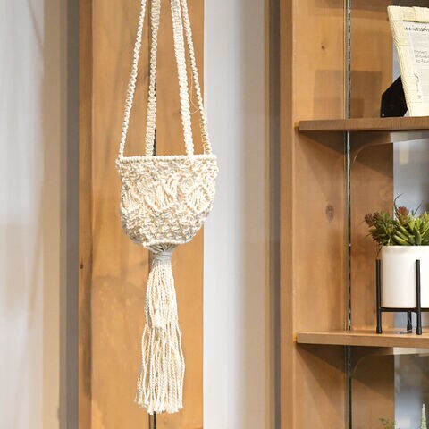 マクラメ編みで柔らかい雰囲気を演出してくれるフラワーベースなので、様々なインテリアに馴染みます。