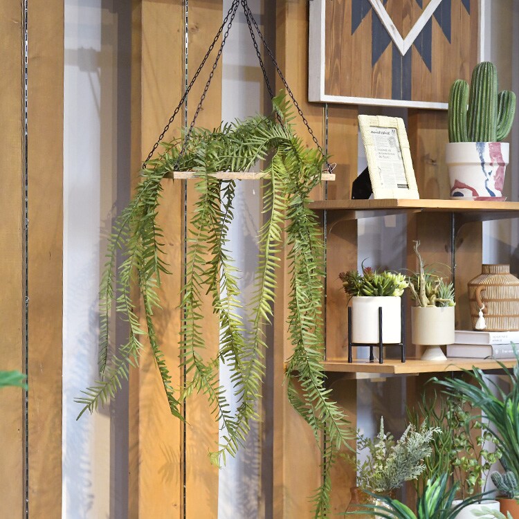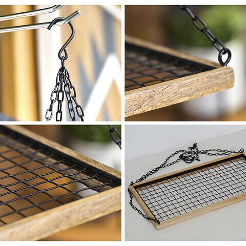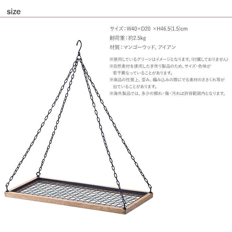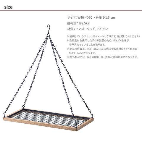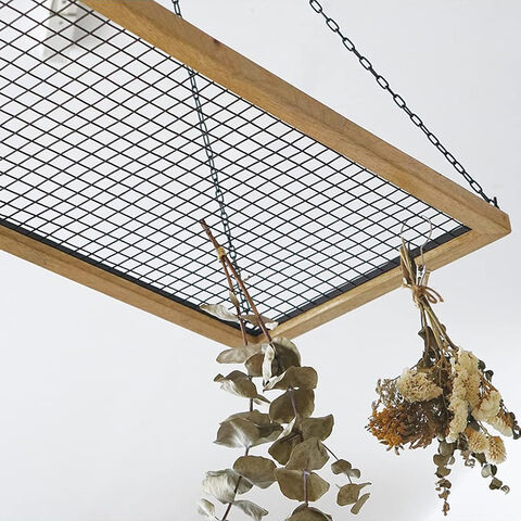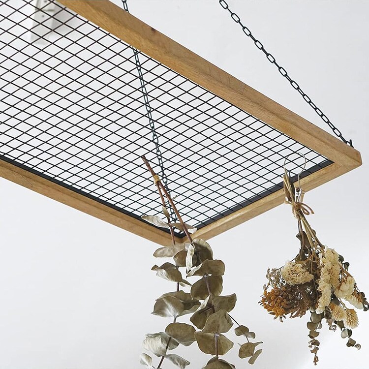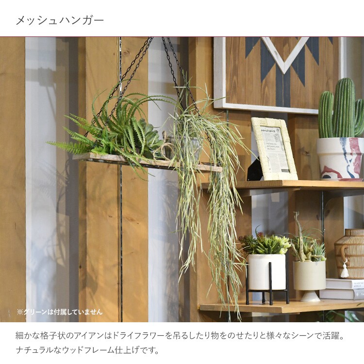 細かな格子状のアイアンはドライフラワーを吊るしたり物をのせたりと様々なシーンで活躍。ナチュラルなウッドフレーム仕上げです。