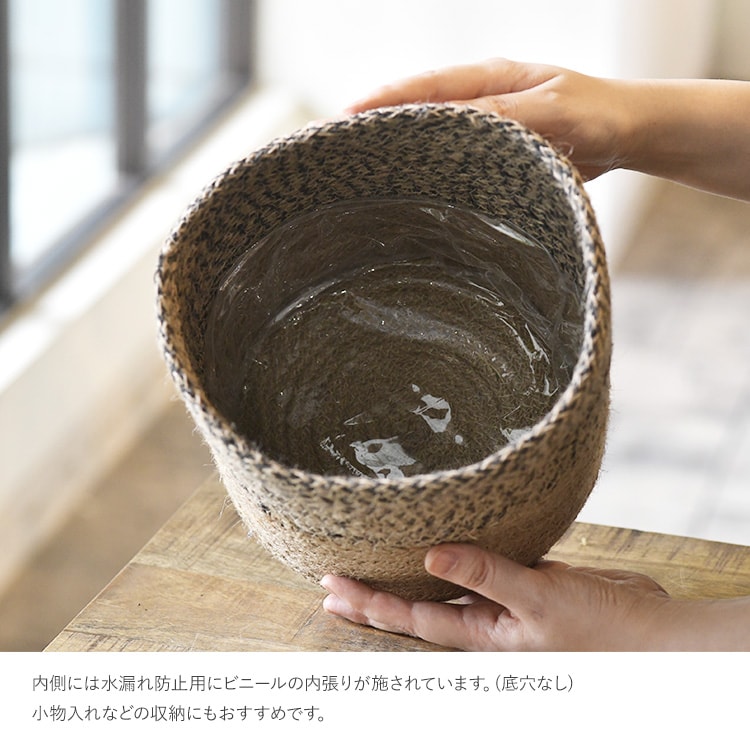 内側には水漏れ防止用にビニールの内張りが施されています。(底穴なし)