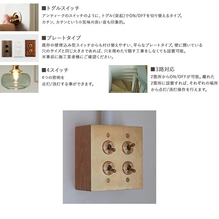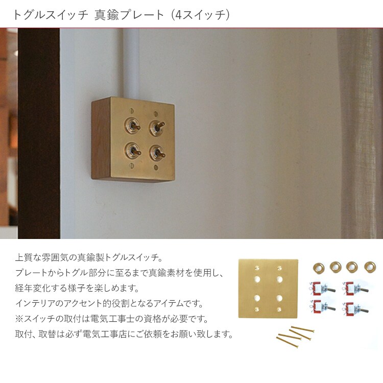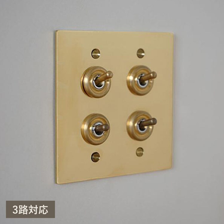 トグルスイッチ 真鍮プレート (4スイッチ) 照明 スイッチ 照明器具 壁スイッチ 北欧 インテリア インテリア おしゃれ 韓国 インテリア ライト ダイニング リビング 寝室 玄関 ナチュラル インダストリアル レトロ