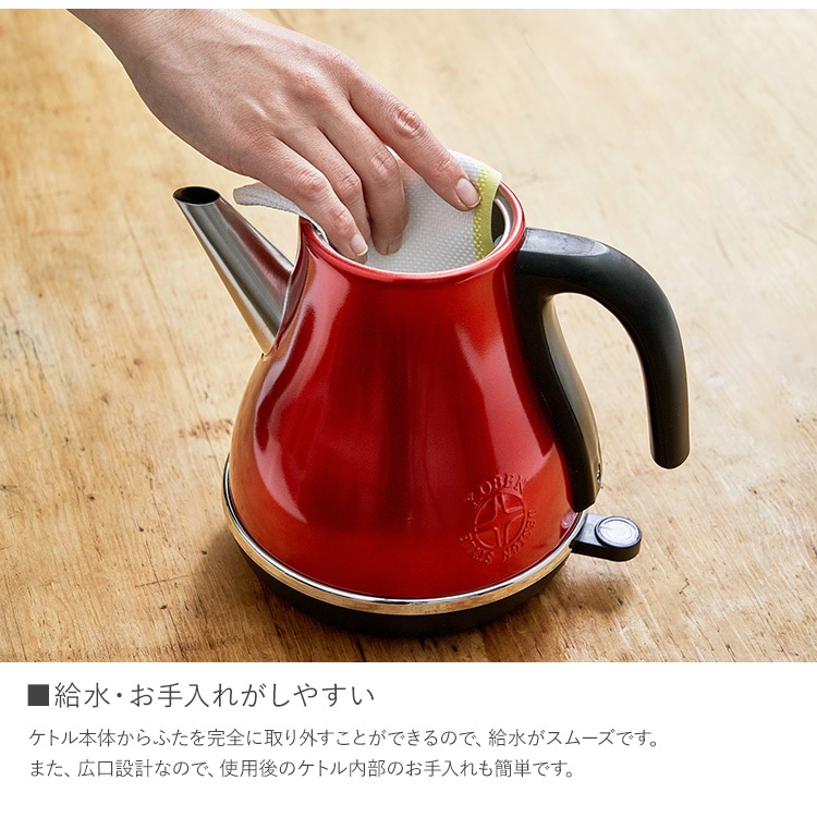また、広口設計なので、使用後のケトル内部のお手入れも簡単です。