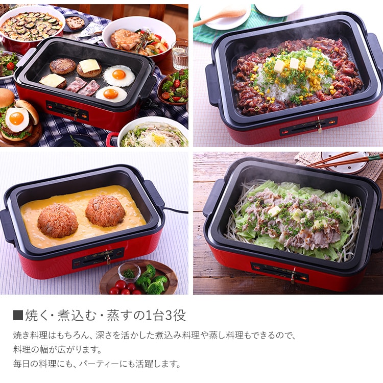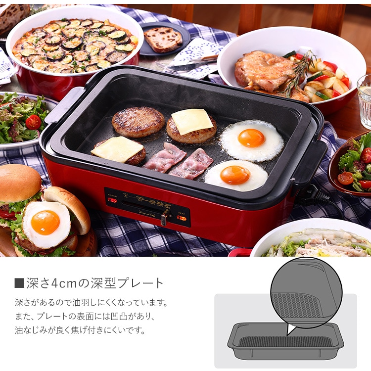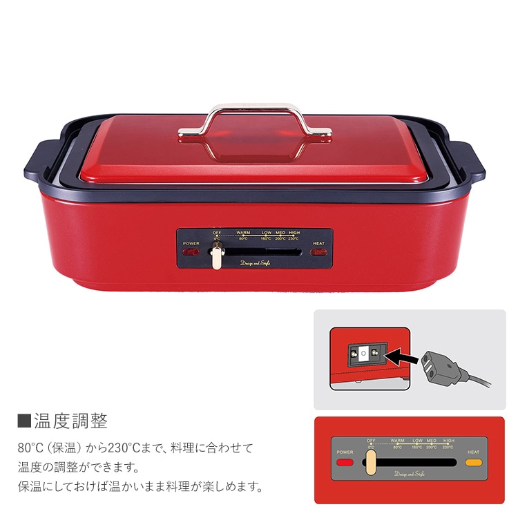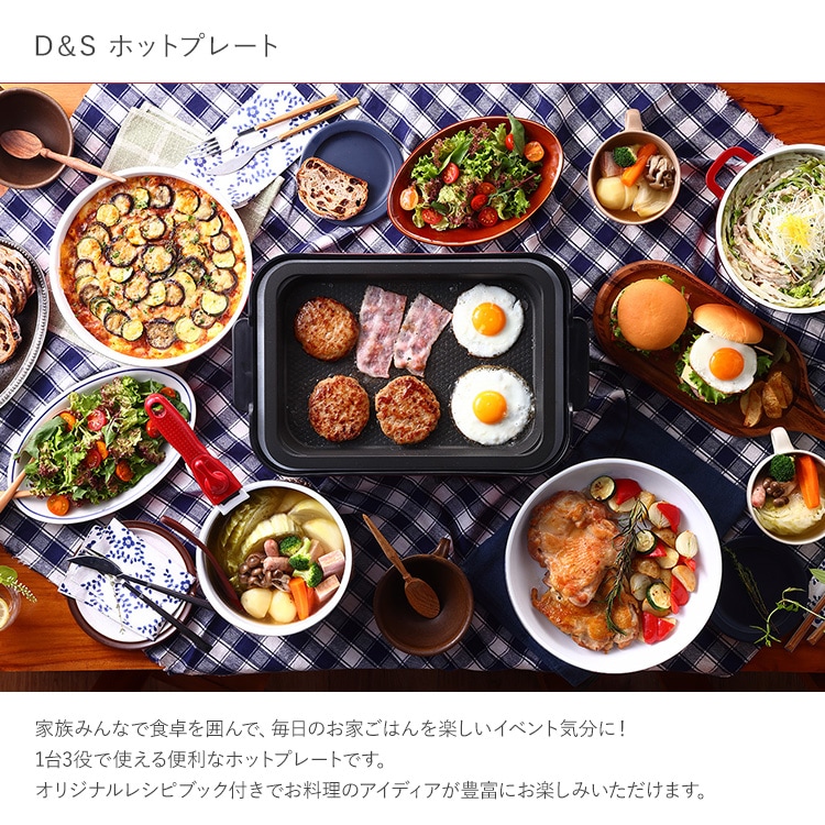 D&S ホットプレート 調理家電 調理器具 深型 焼肉 鍋 パーティー 温度調節 キッチン家電 キッチン用品 シンプル スタイリッシュ おしゃれ