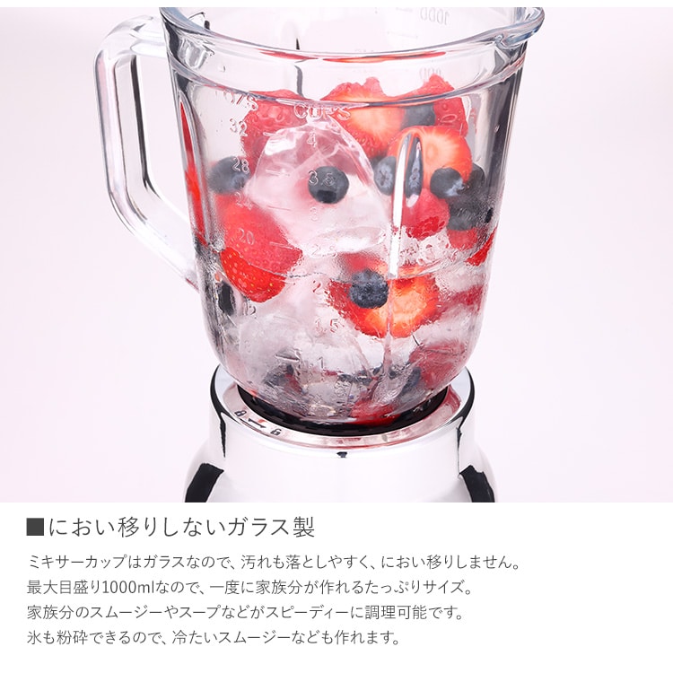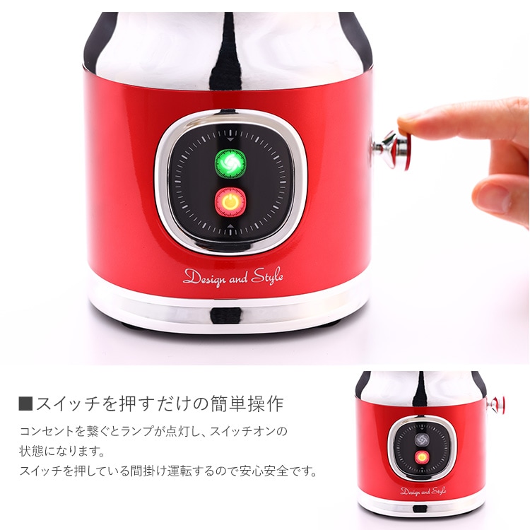 商品説明:フルーツジュースやスムージーに手軽に挑戦できるミルミキサー。
