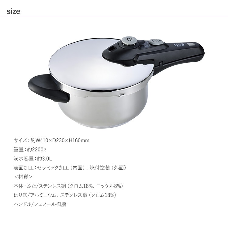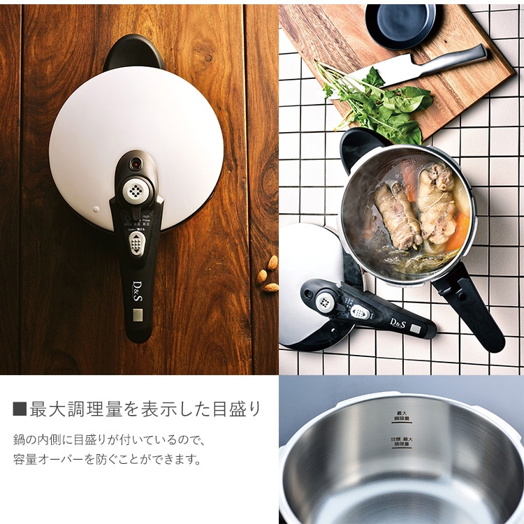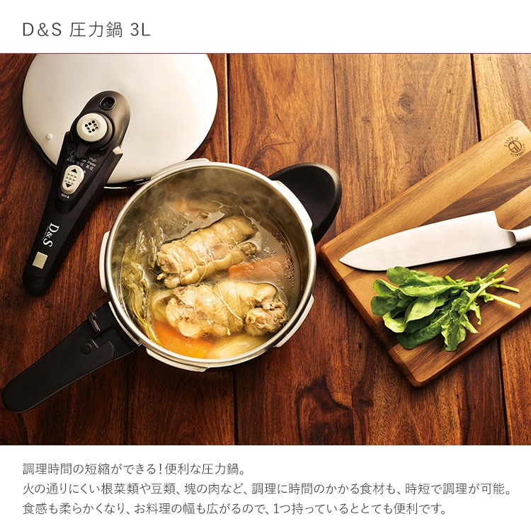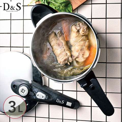 D&S 圧力鍋 3L 調理器具 鍋 時短 圧力調理 IH ガス 2段階圧力 高圧 低圧 レシピ付 キッチン