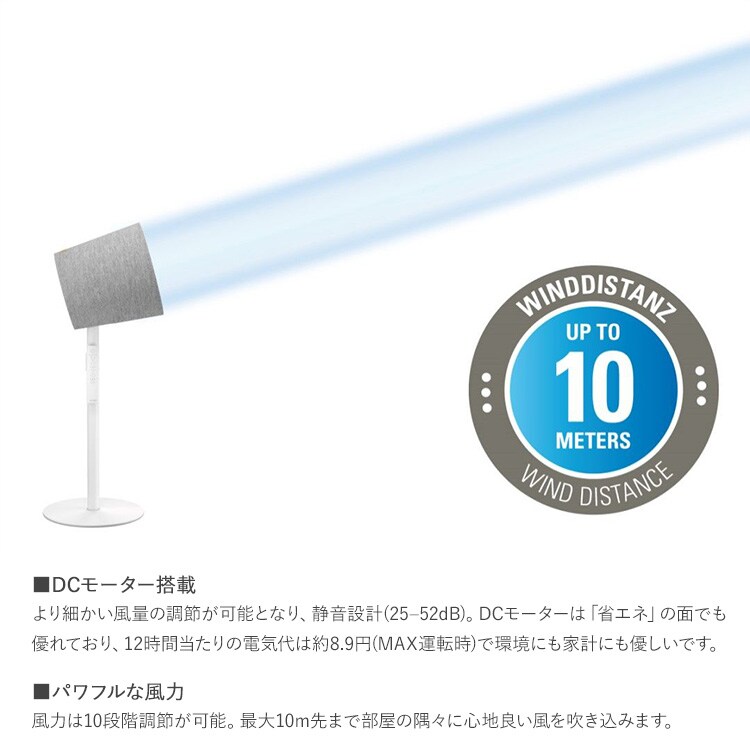 10m先まで届くパワフルな風力がお部屋の隅々まで広範囲に心地く風を吹き込みます。
