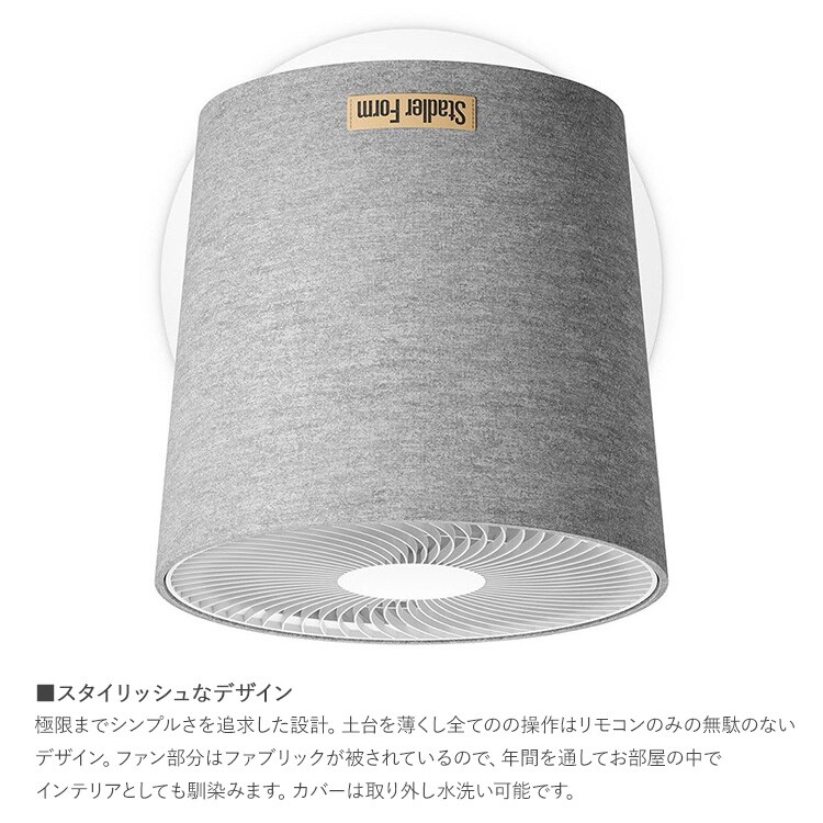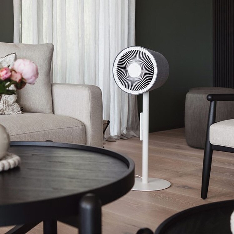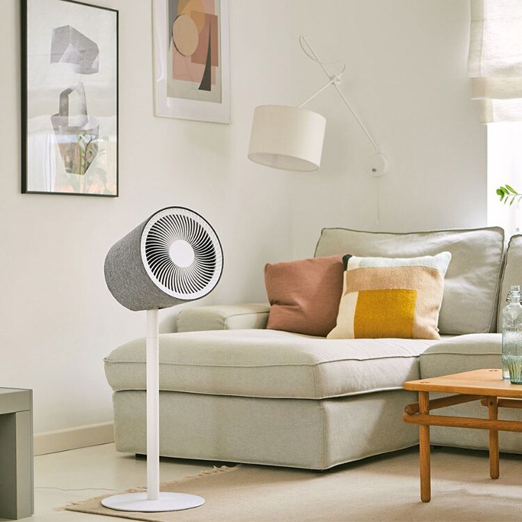 インテリアの象徴的な存在であるデザインランプをモチーフに、心地よいファブリックを備えた家具のようなデザインの3Dサーキュレーター“Simon(サイモン)”。