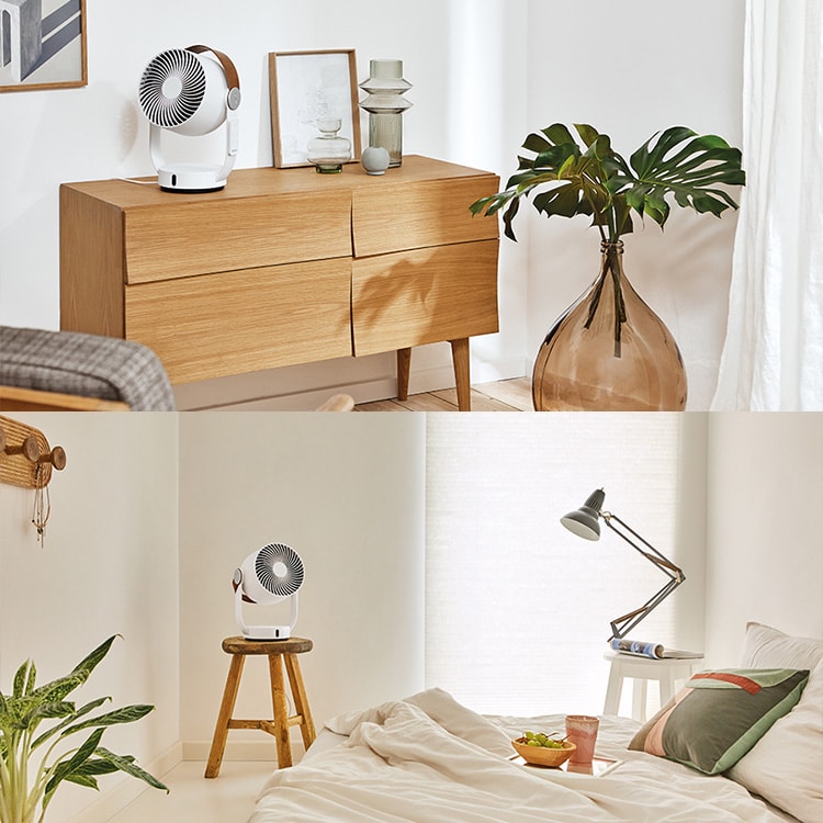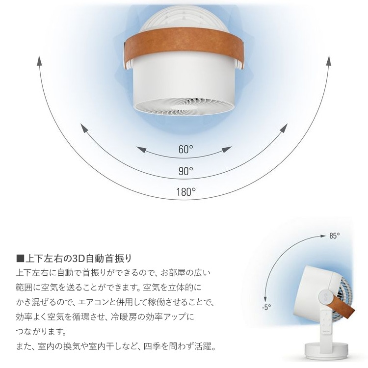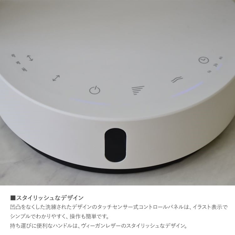 置く場所を選ばないコンパクトなボディで、キャッチ―な見た目の良さが魅力的なタッチパネル式3Dサーキュレーター“Leo(レオ)”。