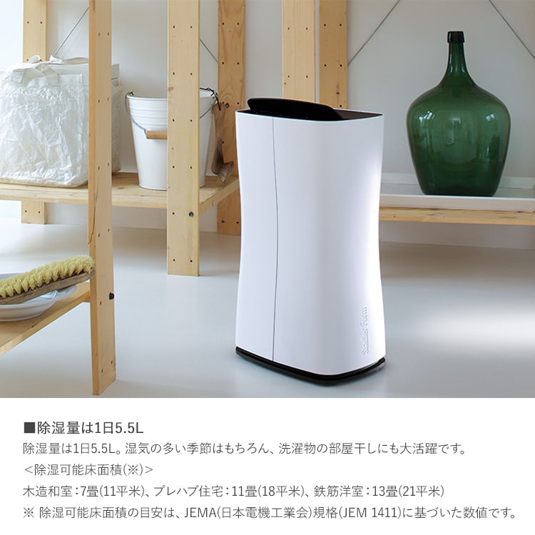 除湿量は1日5.5L。湿気の多い季節でもパワフルに乾燥します。