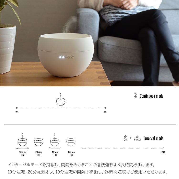 アロマオイルたった2滴で、お好みの香りが24時間持続。