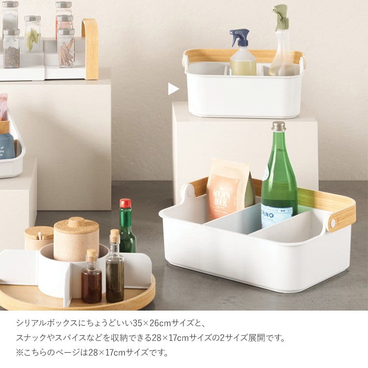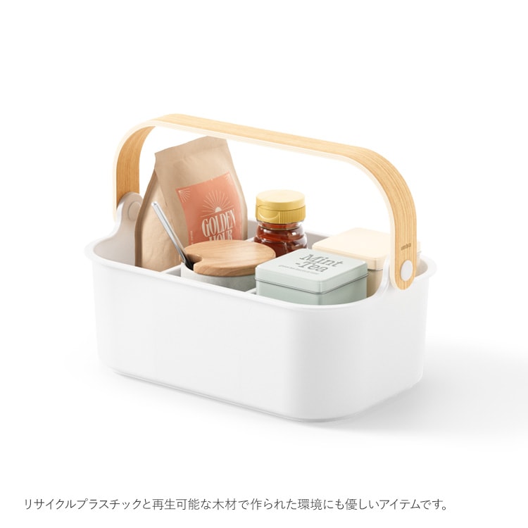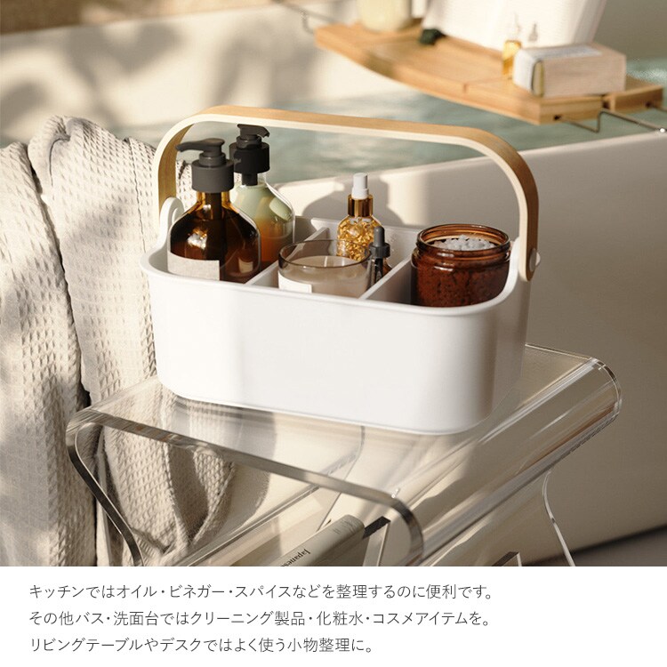 ハンドル一体型で持ち運びが便利な仕切り付き収納ケース。