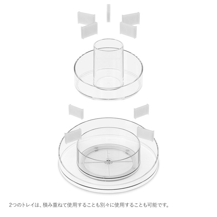 2つのトレイは、積み重ねて使用することも別々に使用することも可能です。