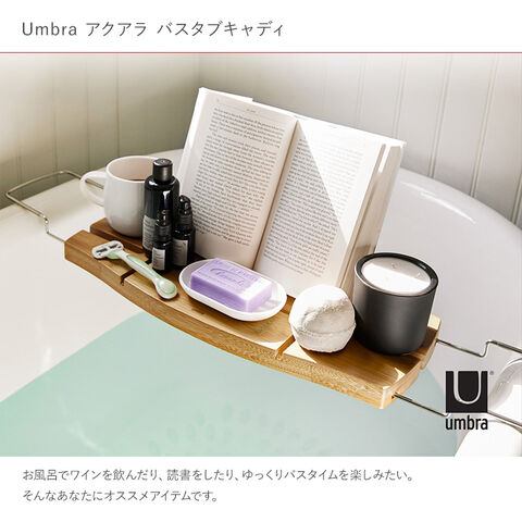 Umbra アンブラ アクアラ バスタブキャディ ナチュラル バスタブトレー テーブル バスルーム 浴室 お風呂 読書 スタンド 浴槽テーブル シンプル ナチュラル おしゃれ 北欧 インテリア