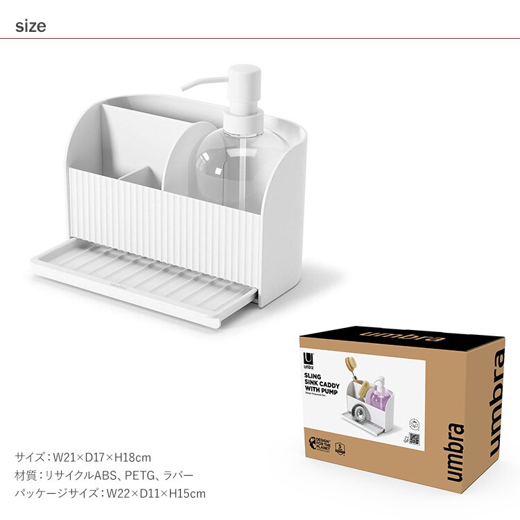 Umbra アンブラ スリング シンクキャディー ポンプ ホワイト スポンジラック コンパクト ソープディスペンサー スポンジ置き キッチン収納 キッチン 台所 シンク おしゃれ 北欧 シンプル