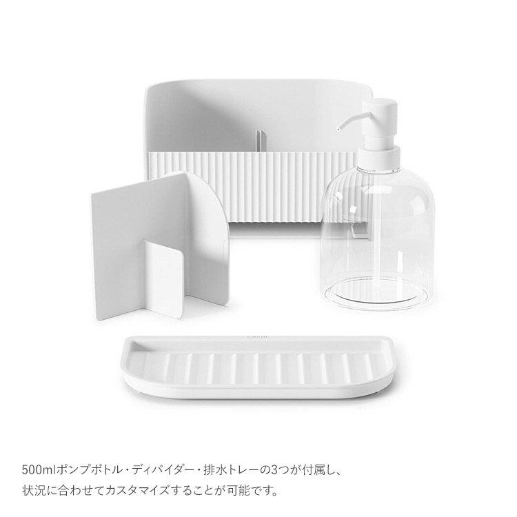 500mlポンプボトル・ディバイダー・排水トレーの3つが付属し、状況に合わせてカスタマイズすることが可能です。