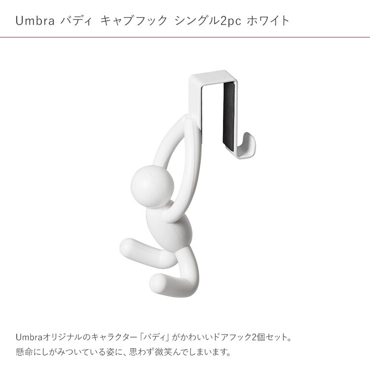Umbra アンブラ バディ キャブフック シングル2pc ホワイト タオルフック 引っ掛け タオルハンガー 扉 裏 フック キッチングッズ おもしろ ユニーク キッチン 台所 かわいい おしゃれ 北欧 シンプル