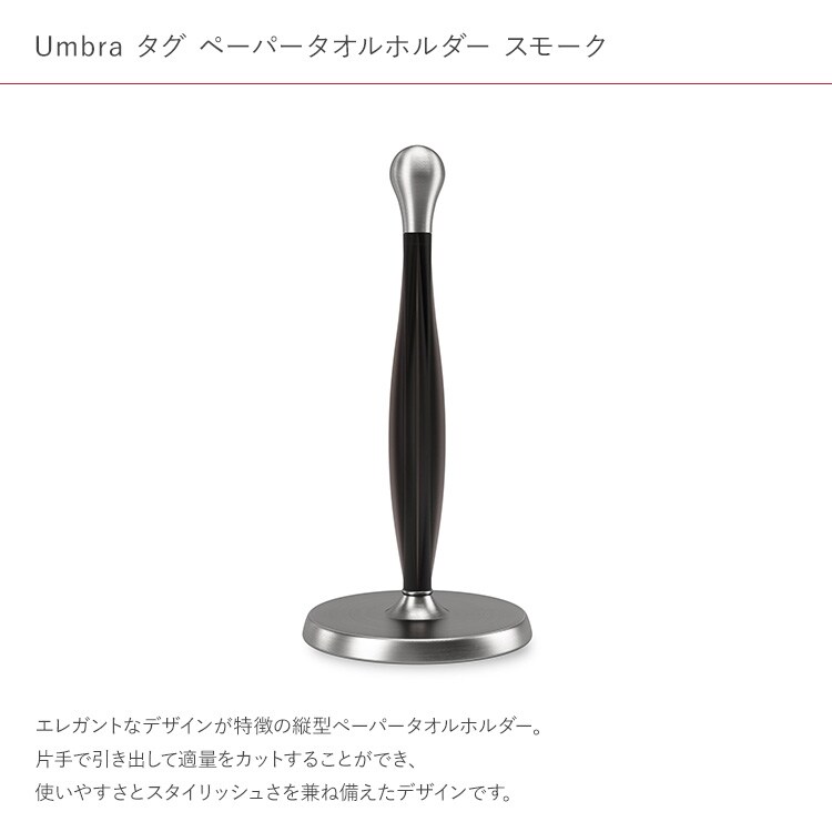 Umbra アンブラ タグ ペーパータオルホルダー スモーク ロールホルダー 片手で切れる スタンド 置き型 縦型 キッチングッズ キッチン 台所 おしゃれ 北欧 シンプル