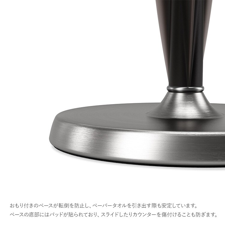 おもり付きのベースが転倒を防止し、ペーパータオルを引き出す際も安定しています。