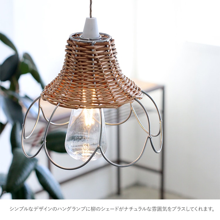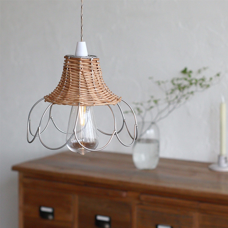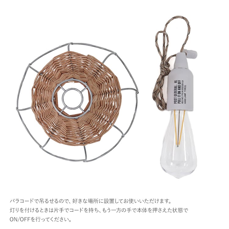 電池式LEDランプとアイアンと柳で編まれたランプシェードのセット。