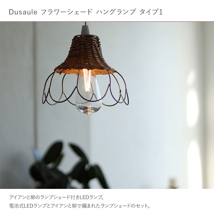 Dusaule デュソール フラワーシェード ハングランプ タイプ1 電池式 懐中電灯 LED 割れにくい 災害 緊急 防災 シェード付き 屋外 キャンプ アウトドア 防災ランプ 防水