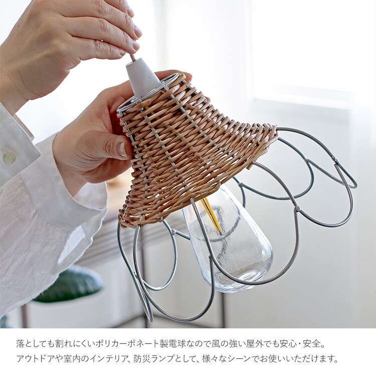 落としても割れにくいポリカーボネート製電球なので風の強い屋外でも安心・安全。
