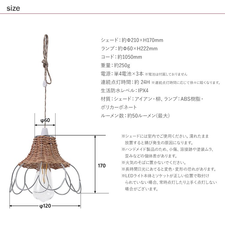 連続点灯時間:約24H ※連続点灯時間に応じて徐々に暗くなります。