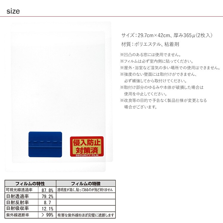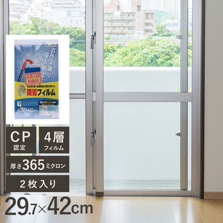 CP認定防犯フィルム 297x420mm 2枚入 CPマーク 防犯フィルム ガラス破り防止 防犯グッズ 防犯用品 防犯グッズ 窓ガラス 割れ 飛散 防止 災害 留守 安全 安心 空き巣 対策 グッズ 窓ガラスフィルム ハイロジック