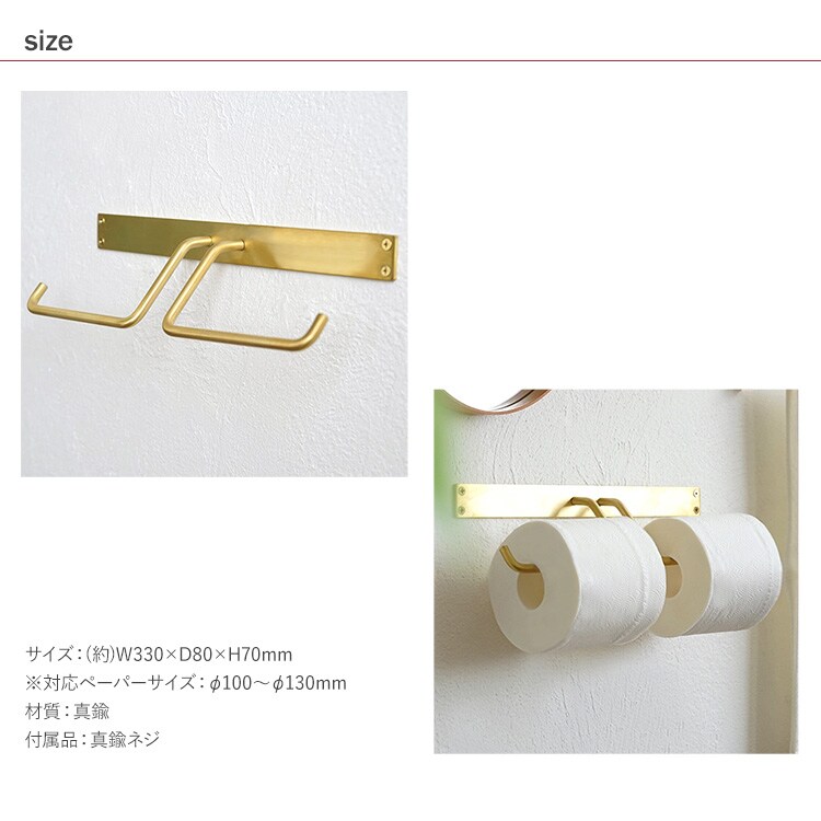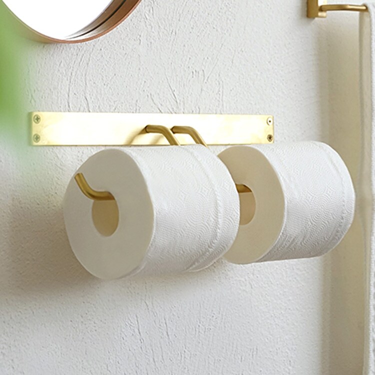 ブラス ペーパーホルダー ダブル 棚なし アンティーク ゴールド おしゃれ 北欧 トイレットペーパー カバー ホルダー トイレ インテリア リノベーション DIY 簡単 シンプル