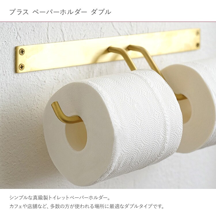 シンプルな真鍮製トイレットペーパーホルダー。カフェや店舗など、多数の方が使われる場所に最適なダブルタイプです。