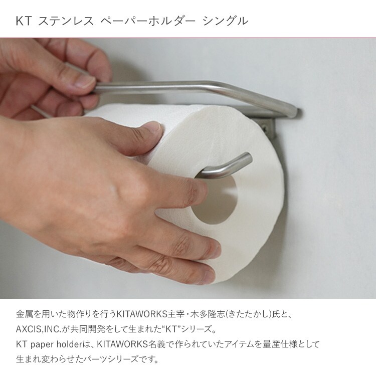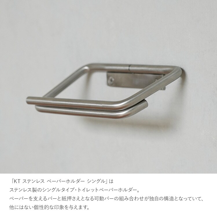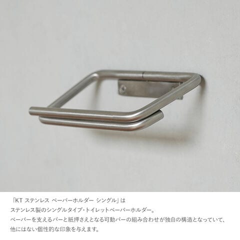 「KT ステンレス ペーパーホルダー シングル」はステンレス製のシングルタイプ・トイレットペーパーホルダー。